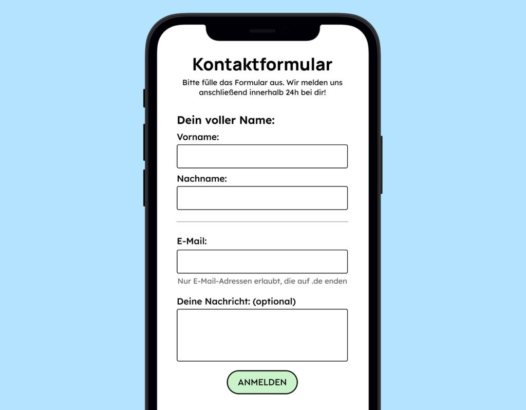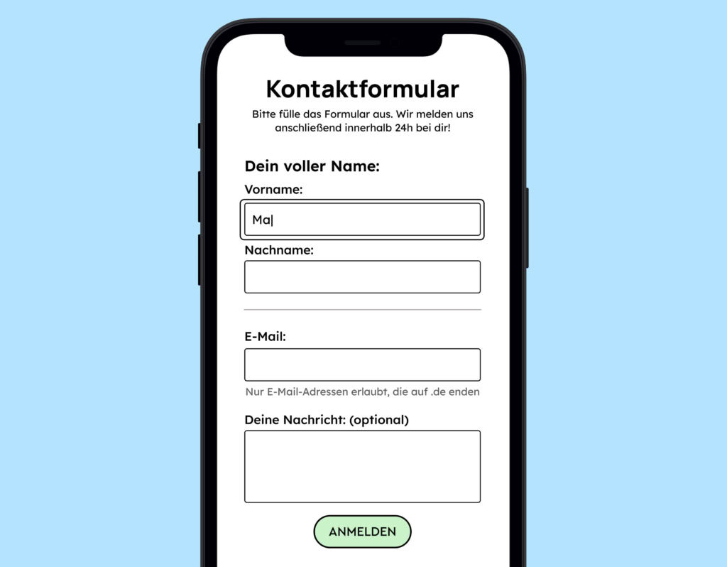 Jetzt wollen wir den Nutzenden noch klar anzeigen, wo sie sich gerade im Formular befinden. Ein offensichtlicher Fokuszustand macht erkennbar, welches Formularfeld man gerade ausfüllt.