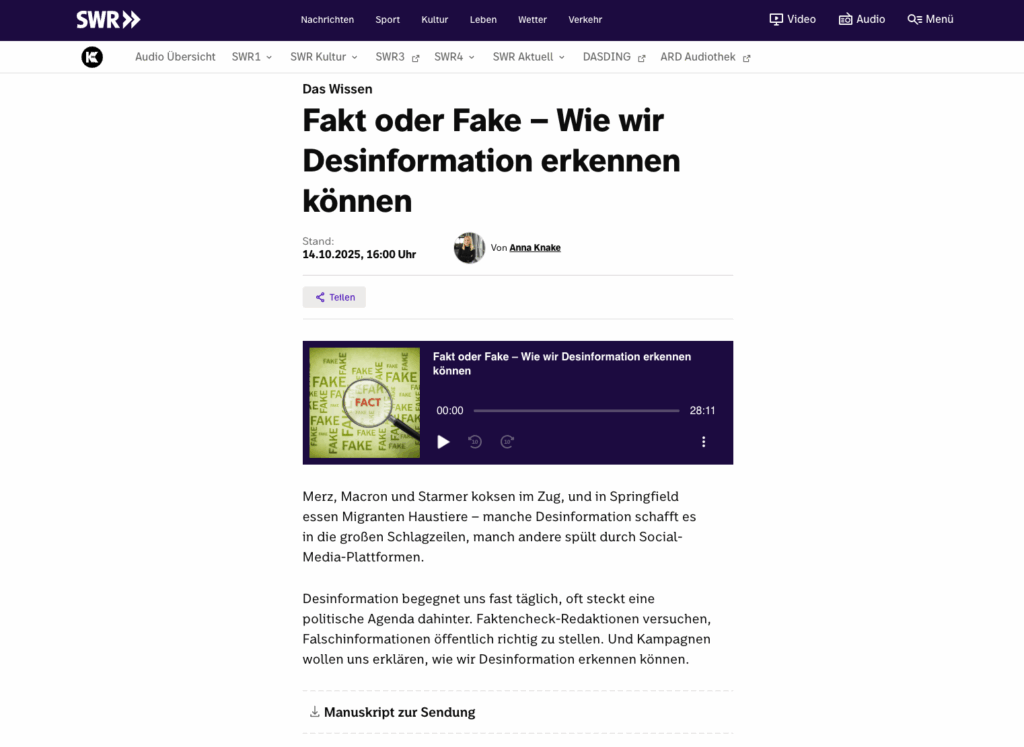 - Barrierefrei bereitstellen: Platziere das Transkript direkt auf der Website oder auf einer gut erreichbaren Unterseite, PDF-Downloads sind für einige Nutzende problematisch!