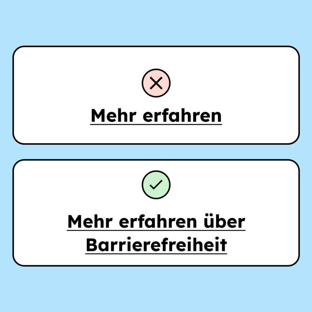 Wenn der Text eines Bedienelements – sei es ein Link, Button oder Formularfeld – im zugänglichen Namen erweitert oder genauer beschrieben wird, muss der sichtbare Text vollständig darin enthalten sein.